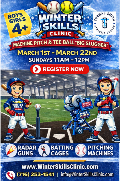 🏟️ WNY’s Premier Baseball Facility (TSAC) – Training at a brand-new, $12M, 35,000 sq ft baseball-specific indoor turf facility built for baseball & softball, not converted soccer fields.